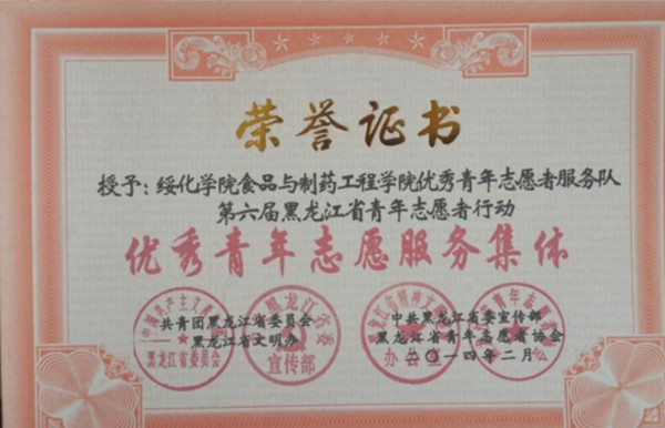 热烈祝贺公司“优秀青年志愿者服务队”被评为“第六届黑龙江省青年志愿者行动‘优秀青年自愿服务集体’”!