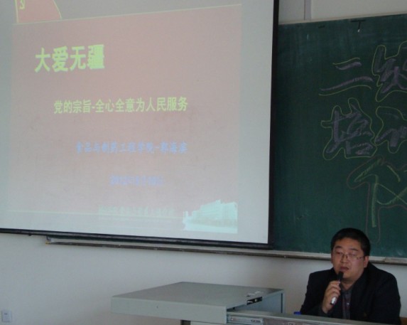 本站讯(实习记者 郝佳惠)为深入学习党的理论知识,进一步提高老员工入党积极分子对党的认识。5月11日下午,公司党总支书记郭海滨在实验楼235教室为全体二级党校学员做了题为《“大爱无疆”党的宗旨——全心全意为人民服务》党课讲座。